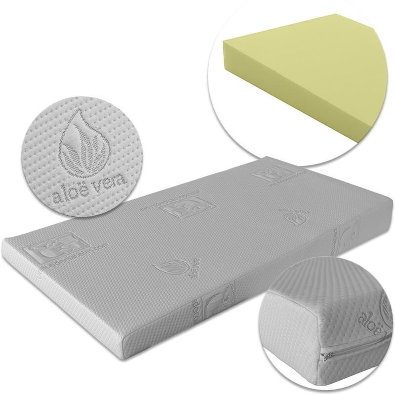 El núcleo de 10 cm de grosor está fabricado en poliuretano de alta densidad (20 kg/m³), un material indeformable que asegura la posición correcta del bebé durante el descanso. La funda exterior, en tejido Stretch de 400 g/m² 100% poliéster con tratamiento Ultimate Freshness y Aloe Vera, aporta suavidad y propiedades naturales que cuidan la piel del bebé. La funda es extraíble y lavable, con cremalleras en tres lados que facilitan su mantenimiento. Este colchón se adapta tanto a bases rígidas como a somieres multiláminas, garantizando funcionalidad y confort duraderos, respaldados por 3 años de garantía en núcleo y funda.